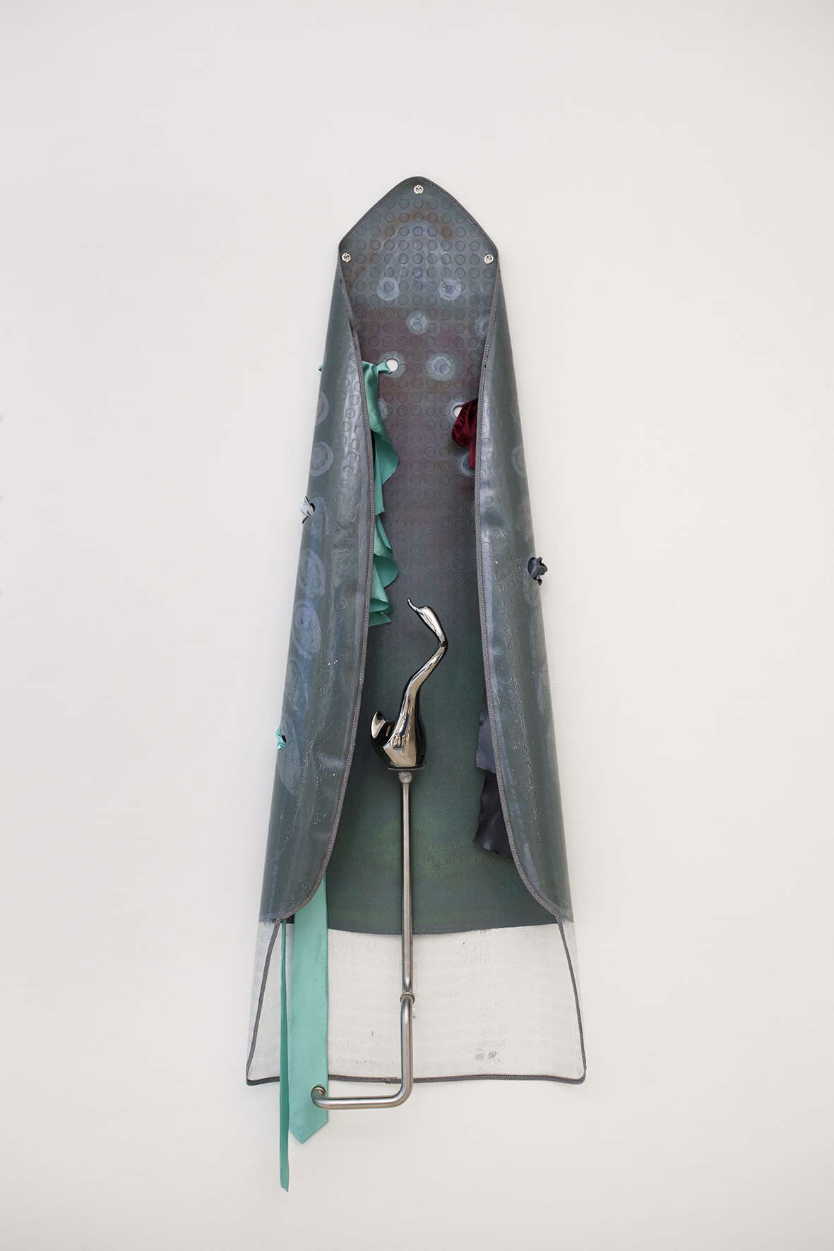 mat, plaster, textile, paper, metal, bulletproof vest, piercing, 193 x 65 cm