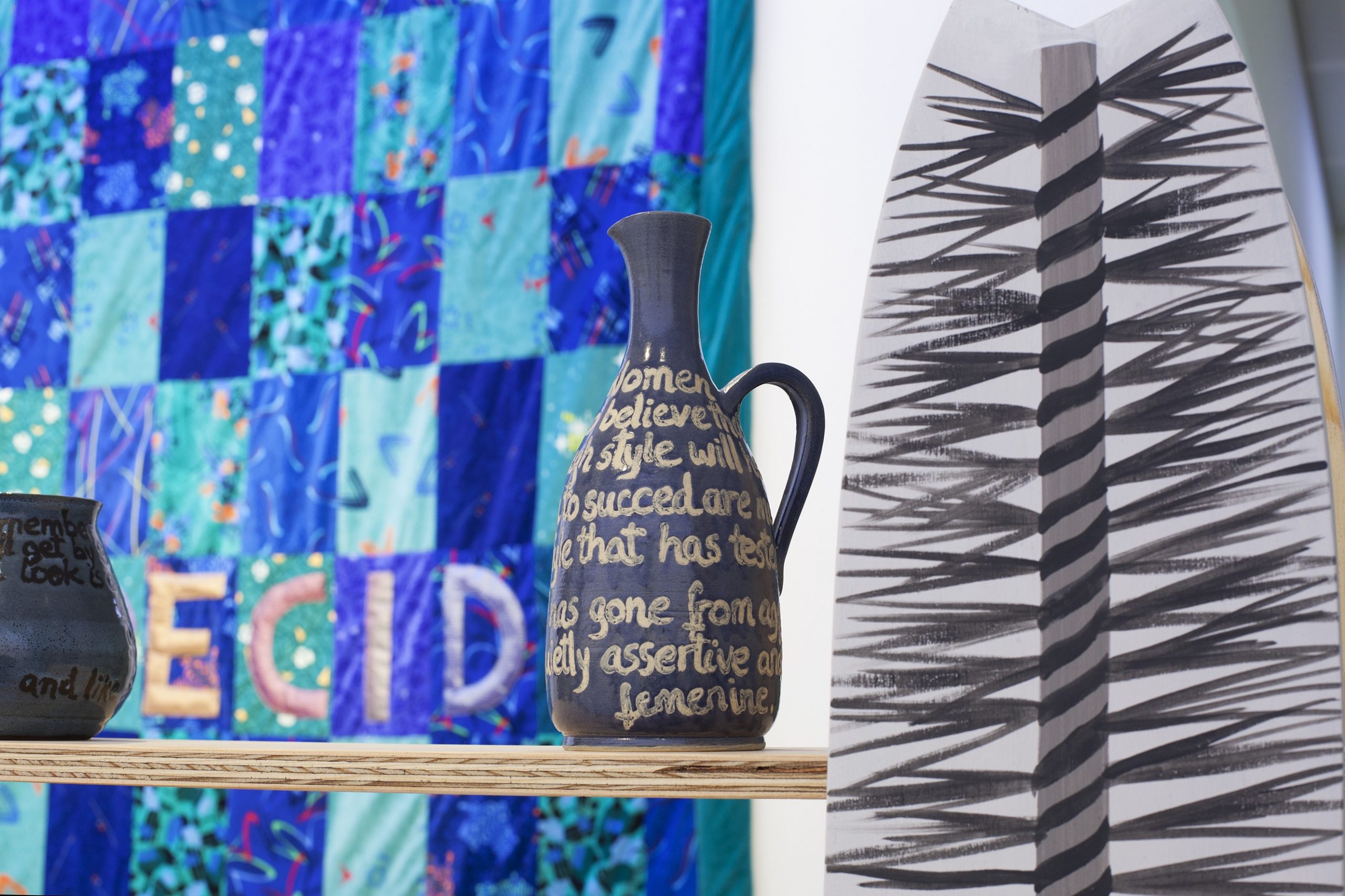glazed ceramic, papier-mâché, steel, wood, vinyl, acrylic