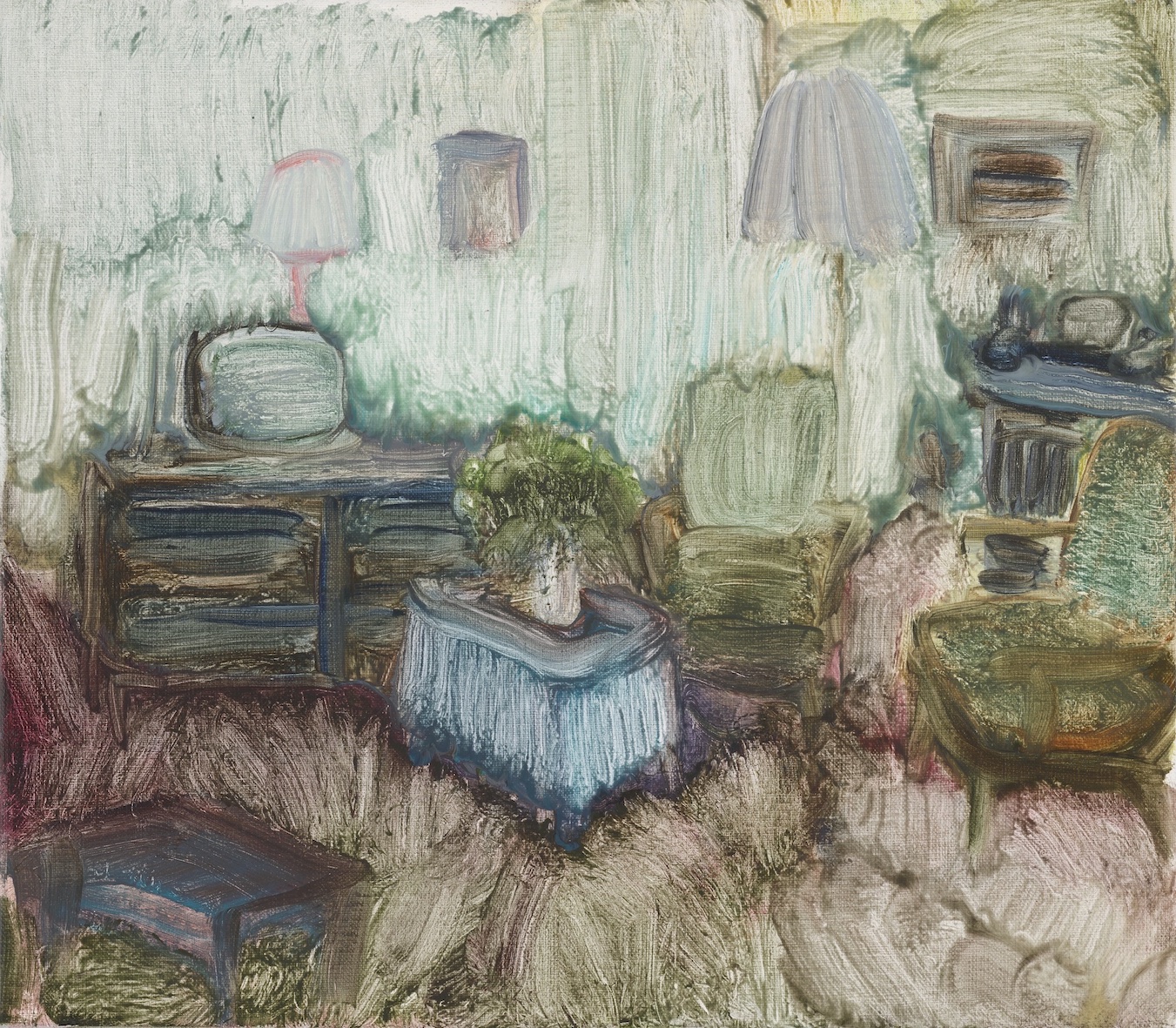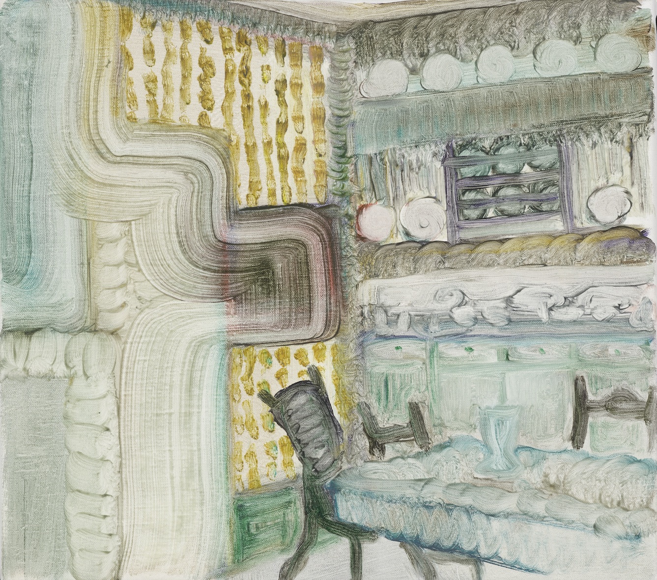 Welten’s paintings challenge traditional ways of perception. Color, movement, depth, and scale almost literally slip away into the layers of dark and light oils. Wayfinding with streaks of vibrant and pastel color, the emphasis on letting her imagery appear from intuition becomes ever clearer. The objects, patterns, and spatial dimension almost seem to overtake any sense of demarcation around the subject. Proportionally her works eye askew: subjects bend their bodies to fit the frame and the furniture swings; as if we’ve caught them in a dance. She has a solid style brushstroke, yet it leaves room for a feeling of featheriness. Countering convention she makes the paint accommodate the canvas, instead of the canvas accommodating the paint.