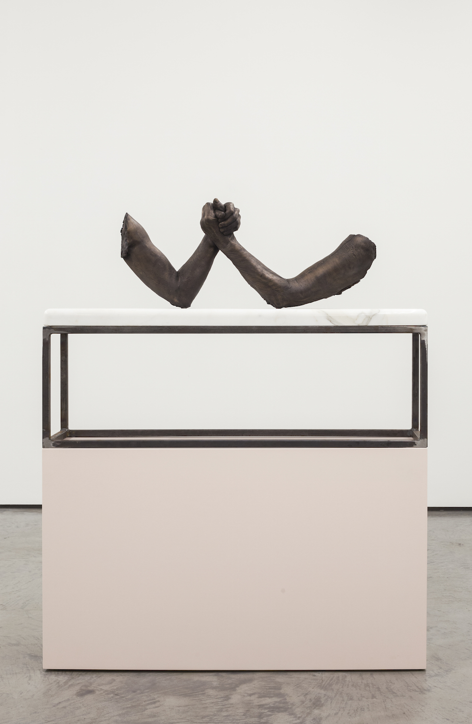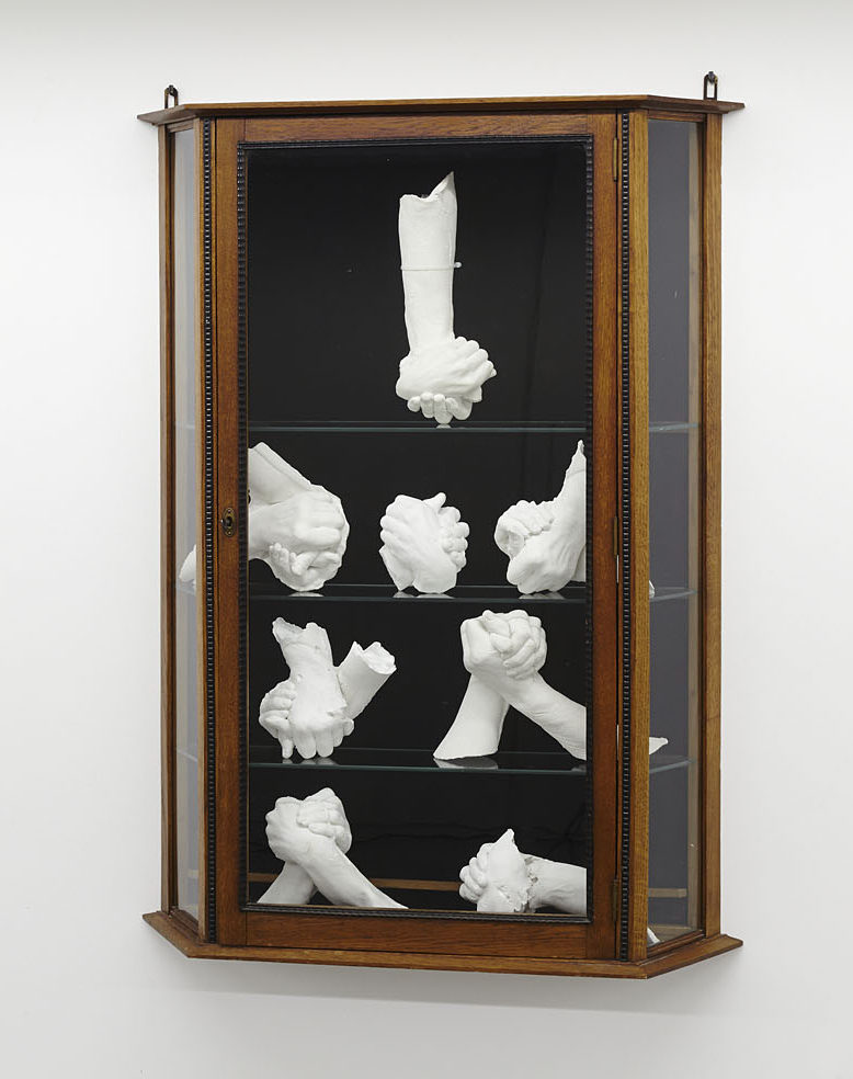 A recurrent theme in her work is the passing of time: mortality as the inescapable shadow of status, fame and glamour, but also as the catalyst of existing relationships. In ‘Based on a True Story’ Van Ark employs ‘nostalgic’ elements—the familiar form of a specific type of photo frame, the movie star, mirrors, images of hands intertwined—which she makes abstract and gives new life in surprising combinations. With Van Ark it’s all about looking, feeling and making connections. The portraits of movie stars, for instance, were selected by her on the basis of their penetrating gazes, and the two bronze hands clasping each other are her own hand and that of her grandmother, an image of struggle as well as engagement. In her quest to fathom things as they are, Van Ark invites the viewer to follow her gaze and her hand.