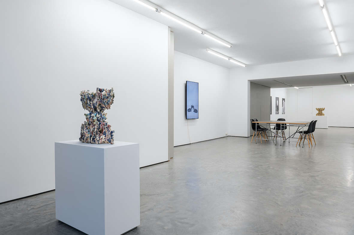 In the work of both Bertrand Cavalier (1989, Tarbes, FR) and Josep Maynou (1980, ES) metamorphosis occurs in the image of the ordinary. Maynou produces work in a range of disciplines that can be defined as a contemporary form of storytelling. His installations are often shown at places outside the usual ‘art context’: television repair shops, private apartments, vacant industrial spaces, laundromats or secondhand shops. Maynou’s stories are like moments lost in translation, chance experiences that can be real or imagined. From his textile works and sculptures to his drawings and videos, each work tells an amusing story about the structure of social exchange. In his video work Untitled, 2017-2019, a familiar moment of boredom is linked with great achievements.