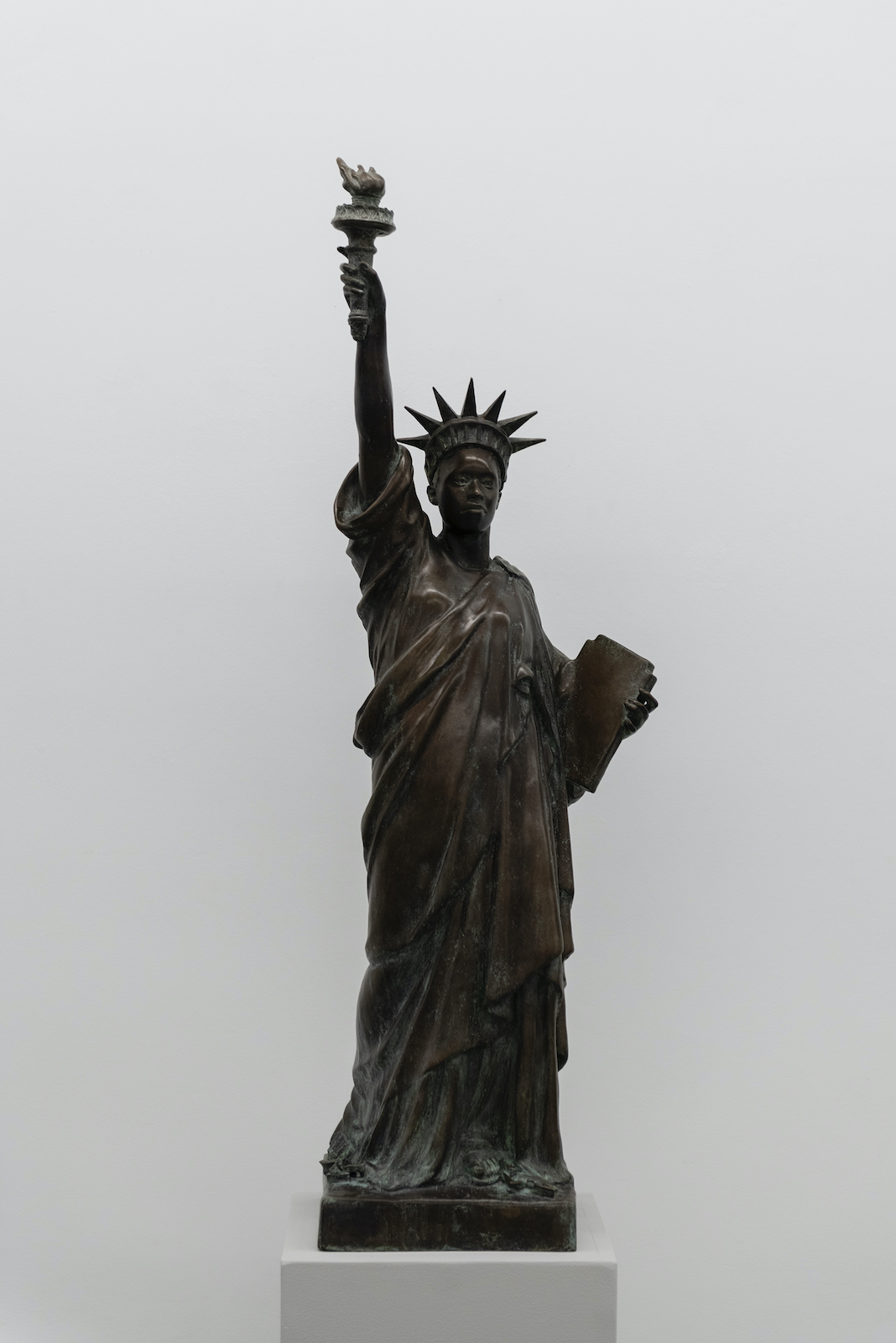 On the occasion of Amsterdam Gallery Weekend, Fernando Sánchez Castillo is presenting Liberty for All: a work produced as an edition, a small wooden version of the Statue of Liberty, but now with the face of a non-white person. The Statue of Liberty was a gift from France to the United States, a gesture of friendship in honor of the centennial of the Declaration of Independence. It was ultimately dedicated on 28 October 1886. Inspiration for the Statue of Liberty came from Édouard René de Laboulaye, a prominent political thinker and outspoken advocate of the abolition of slavery. It is said that the original plan of erecting the statue dates back to a conversation between De Laboulaye and the French sculptor Fréderic Bartholdi. With the statue they wished to pay tribute to the Afro-American soldiers, emancipated from slavery, who fought in the American Civil War; for that reason they proposed to model the statue after a portrait of an Afro-American person. That idea proved to be a bridge too far however. Not until 2017 would the face of a non-white Lady Liberty appear on an American coin.