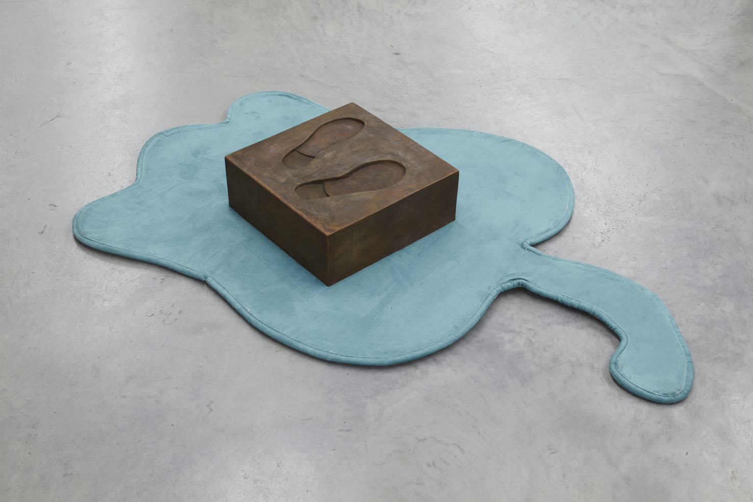 She is thirteen centimeters shorter than the average Dutch woman. One of the works in her solo presentation roll up (one’s) sleeves is a low bronze plinth showing the imprint of her shoes. This base exactly compensates what the artist herself lacks in height in order to conform to the Dutch average.