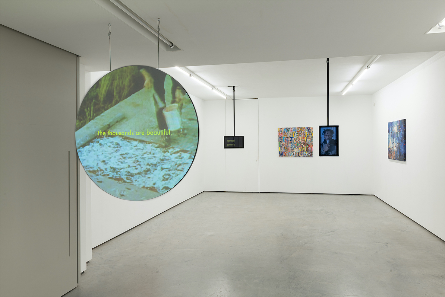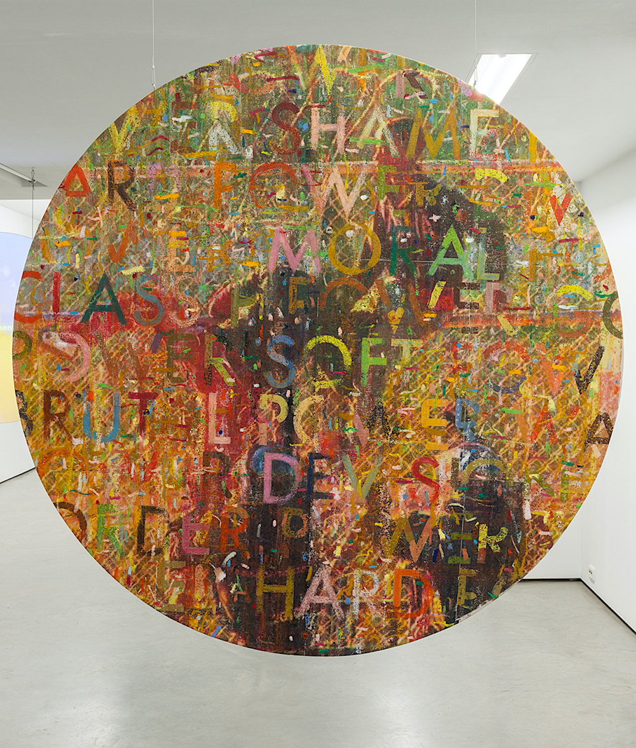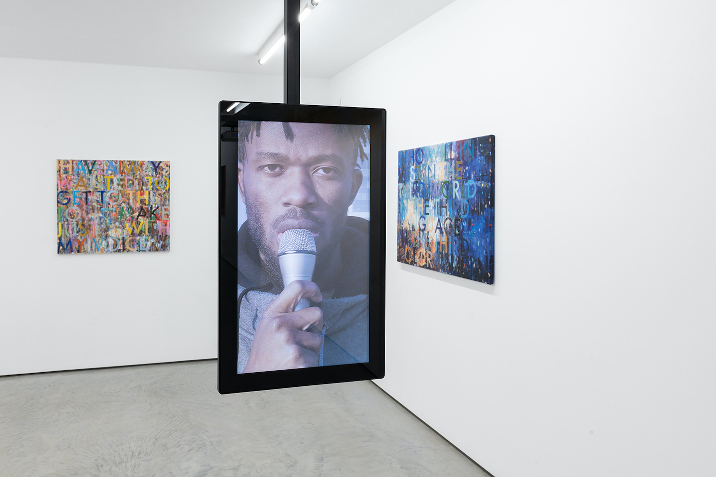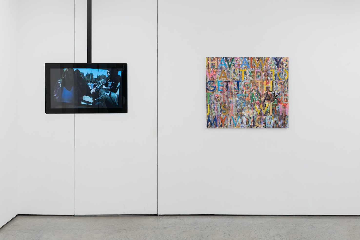In his second solo exhibition at the gallery, You’re your country’s lost property with no office to claim you back, Hamza Halloubi presents an installation consisting of recent videos and paintings. In his work he makes unexpected connections between minor and major artistic and political events. This involves a portrayal of the complex relationship between art and power, between identity and representation. The work aims not to aestheticize or illustrate today’s cultural discourse, but to render images that reverse the position of the viewer.